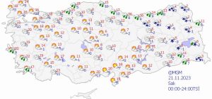 وفقًا للتقرير الصادر عن الادارة العامة للارصاد الجوية التركية، من المتوقع أن تكون درجات الحرارة أقل من المعدلات الموسمية