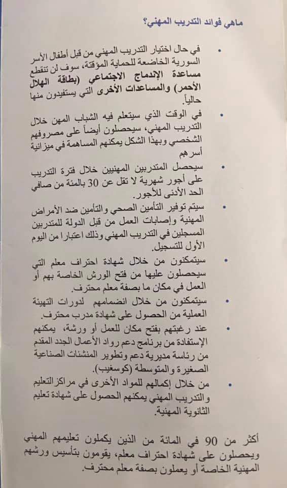 ?الميزات ::سيتم تعليمكم المهنة التي ترغبوها وتأمين وظيفة لكم وعمل سيغورتا ودفع نصف الراتب وصاحب