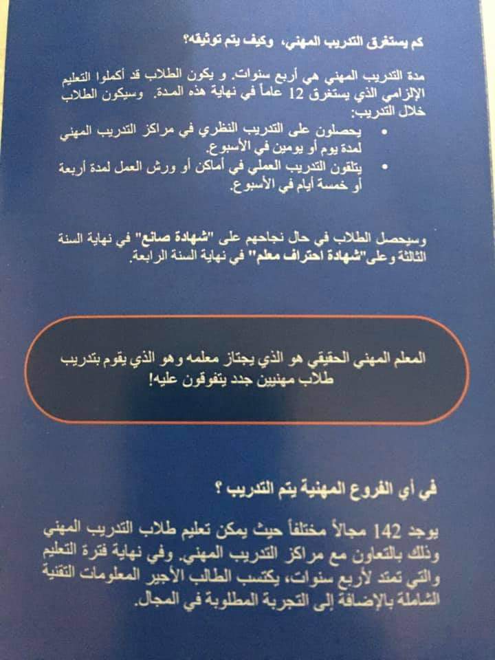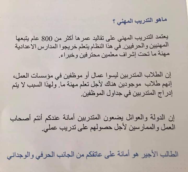 سيتدرب الطالب بالمهنة التي يعمل بها
