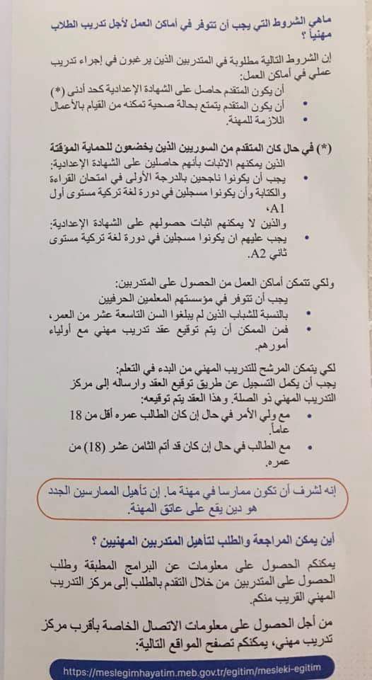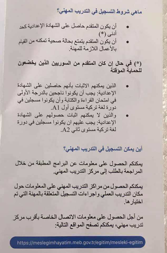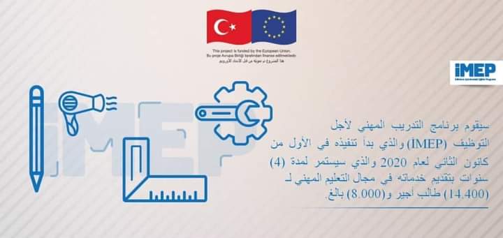 بدأ بتركيا برنامج التدريب المهني لأجل التوظيف بعد التدريب والتعليم لمدة 4 سنوات المشروع ممول من الاتحاد الاوربي